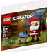 It features Santa Claus working at a magic workbench, along with a small blue train and a wrapped gift