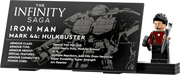 The model features a multitude of movie-accurate features. Within the dark red armor and strategically positioned golden plates lies a spacious cockpit, from which the LEGO Marvel Iron Man Figure (76206) – sold separately – controls the heavy-duty armor. The set also includes an information plate and a Tony Stark minifigure.