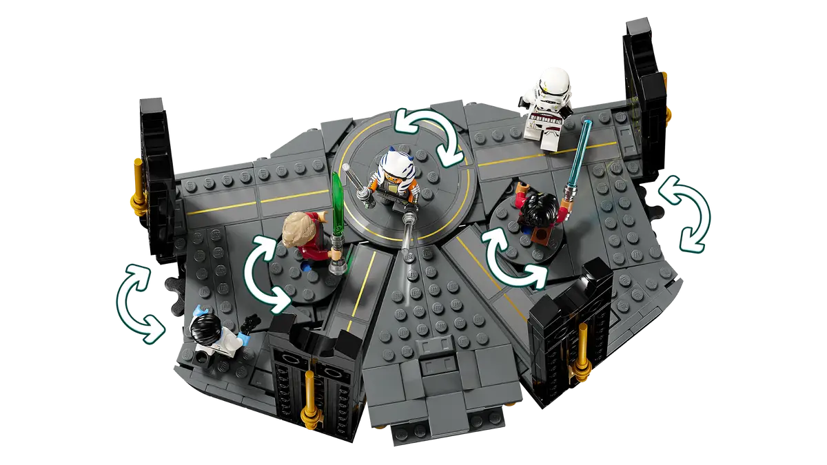 - Buildable battle toy – The brick-built platform has 3 built-in turntables for spinning LEGO® minifigure battles and a function to recreate Ezra’s leap off the platform